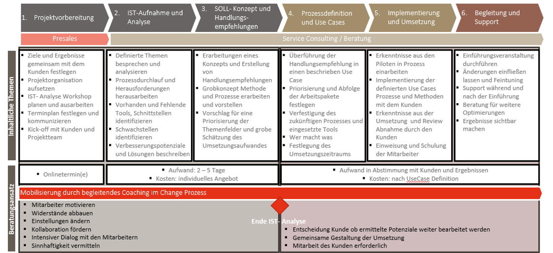 - Eindeutige Prozessbeschreibung und Vernetzung mit bestehenden Prozessen